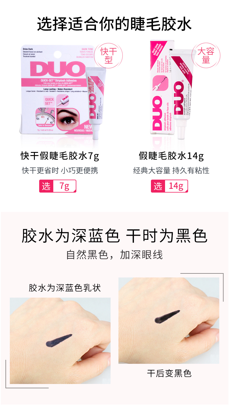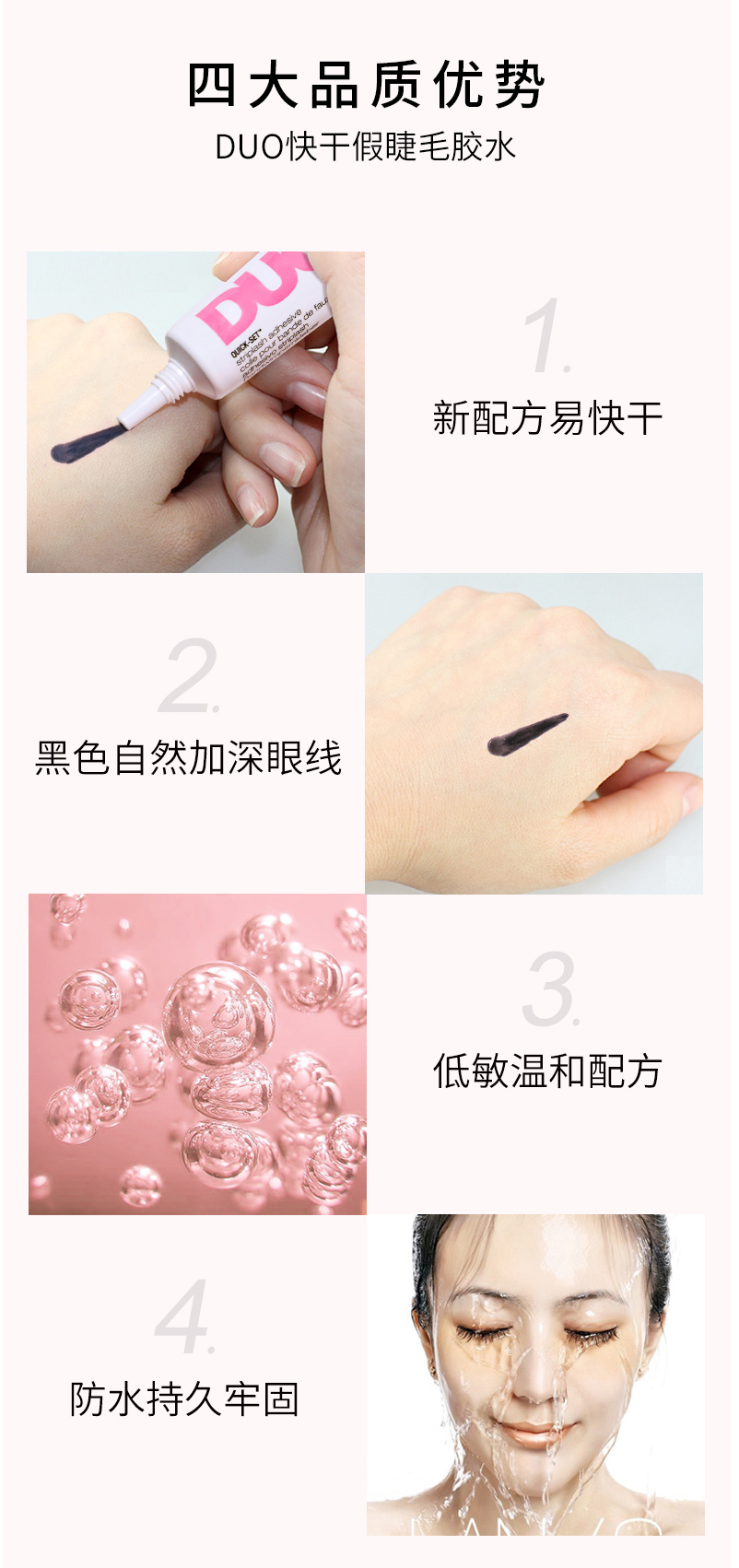 适用于条带状假睫毛,待干时为黑色; 安全、持久,易于卸除